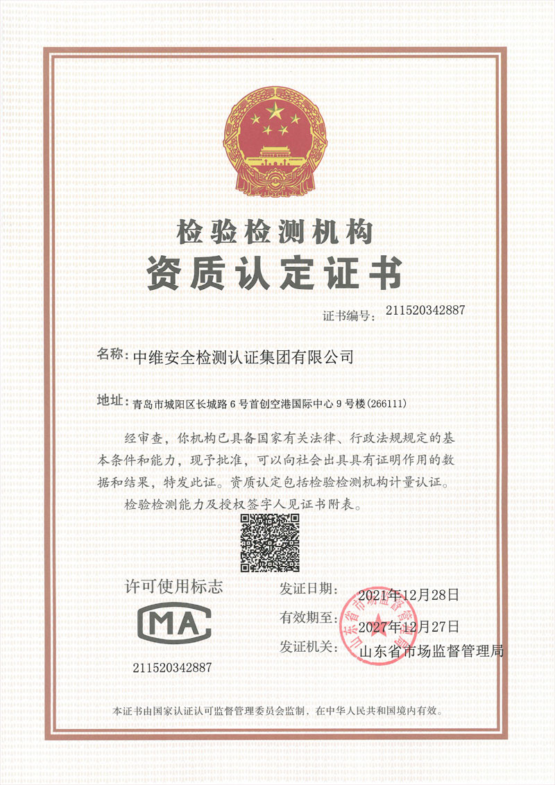 中維安全檢測認證集團有限公司(總部地址一):青島市城陽區(qū)長城路6號首創(chuàng)空港國際中心9號樓